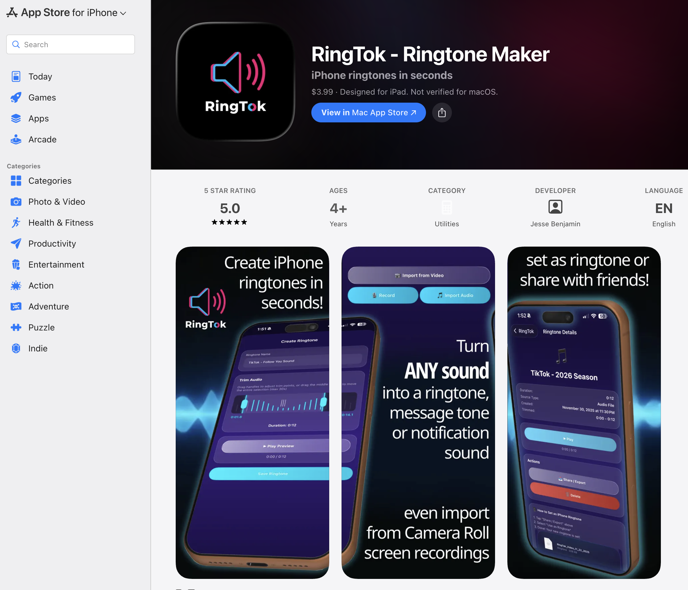RingTok is the fastest, cleanest, most intuitive ringtone creator for iOS. Trim songs, extract audio from videos and export as official iPhone ringtones instantly.